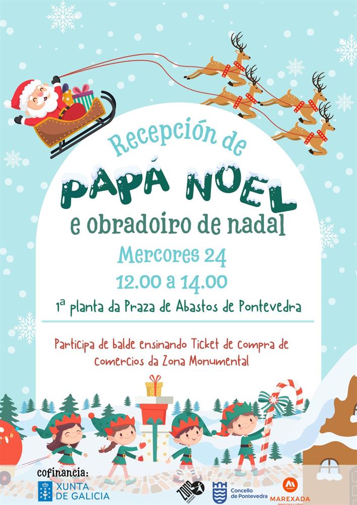 Entre as 12:00 e as 14:00 horas, Papá Noel instalarase no primeiro andar do Mercado de Abastos de Pontevedra, onde recibirá a todos os nenos e nenas que queiran entregarlle persoalmente a súa carta e compartir un momento especial con el.