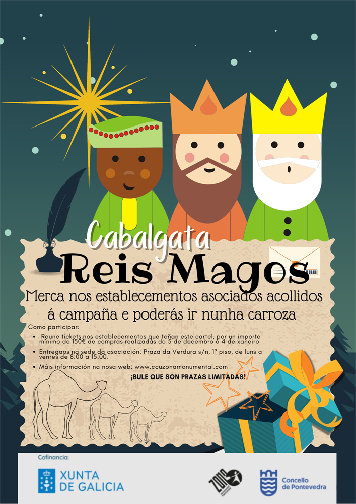 Se realizas as túas compras nos establecementos asociados á campaña do CCU Zona Monumental, poderás participar na Cabalgata de Reis Magos subíndote a unha das súas carrozas.